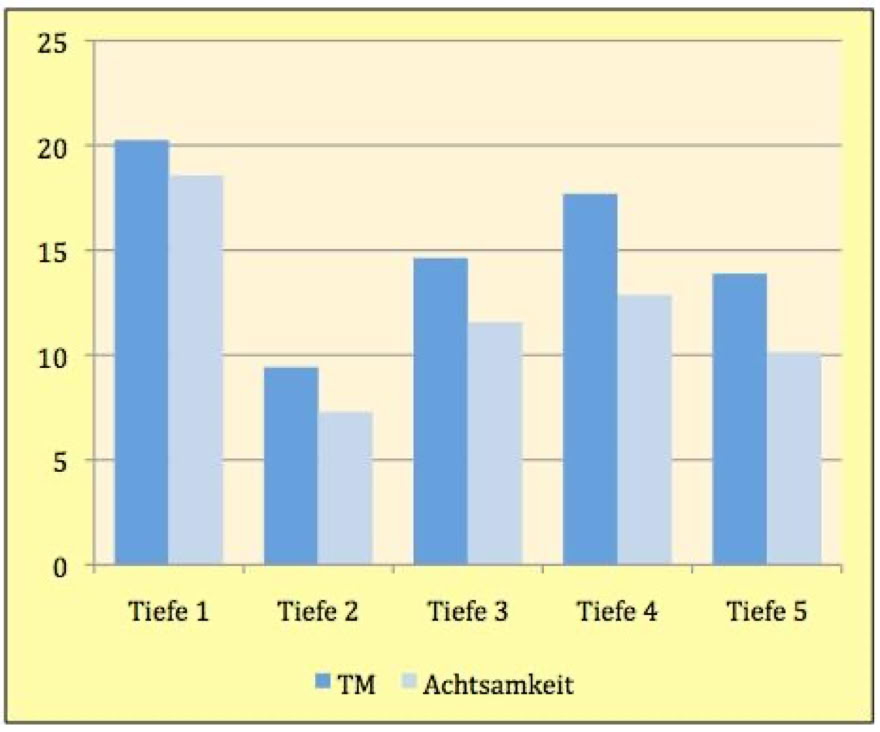 TIEFE 5: Transpersonales Selbst, Transzendenz, Non-Dualität: kognitive Vorgänge wie Gedanken, Vergleiche, Unterscheidungen, Urteile sowie Wahrnehmungen von Emotionen und Empfindungen kommen vollständig zur Ruhe; die Einheit mit allem, Leerheit und Unendlichkeit des Bewusstseins werden erfahren; die Dichotomie von Subjekt und Objekt wird überwunden bzw. beide hören auf, (als eigenständige Entitäten) zu existieren.