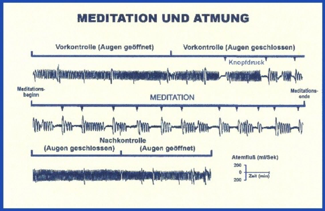 „Während Phasen, die Erfahrungen Transzendentalen Reinen Bewusstseins enthielten, gab es Reaktionen der Hautleitfähigkeit und Beschleunigung der Herzrate zu Beginn respiratorischer Atempausen oder Reduktionen des Atemvolumens.“ Die Verringerung des Atemvolumens betrug im Schnitt 40 Prozent. (Travis & Wallace, 1997)