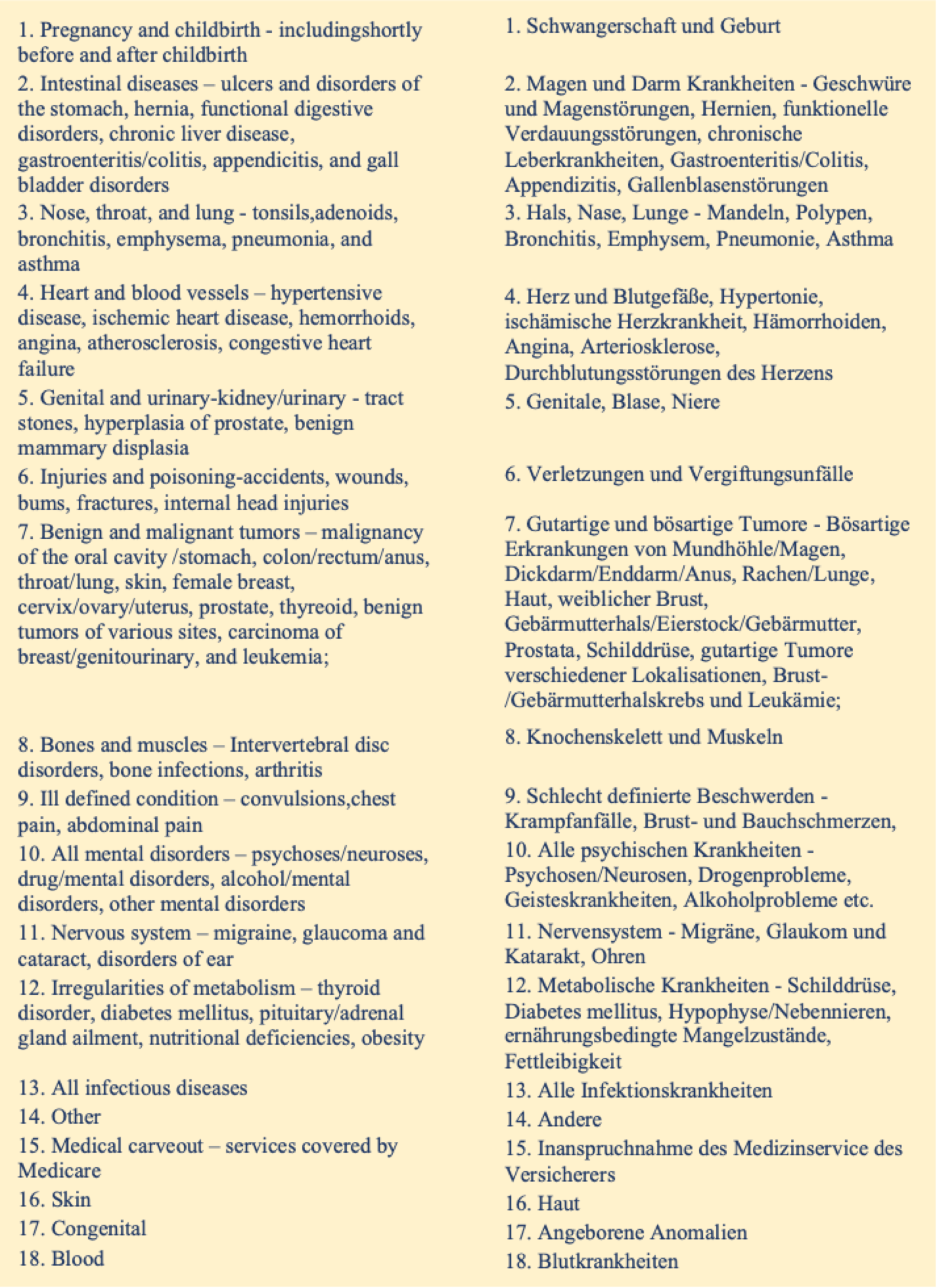 18 Behandlungskategorien für Meditierende und Business-Gruppe